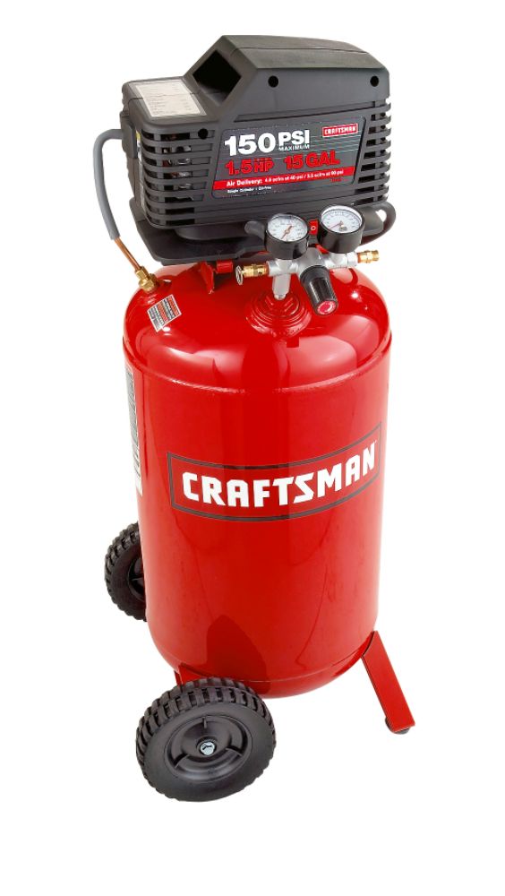 sears got this sale: Craftsman 2 hp Vertical Portable Tank Air Compressor, 33 gal.Sears item #00916732000 Mfr. model #16732Vertical portable tank compressor offers 150 PSI for optimum tool performance. Exclusive shroud and console design, high-flow regulator and universal quick-connect, and comfort grip handle. Large 2-in. gauges for easy reading. Sizeable wheels make this air compressor easy to maneuver. Equipped with 150 PSI, and 6.4 SCFM @90 PSI the 33 gallon tank is a 120 volt, vertical portable, single stage air compressor.and Craftsman 33 gal. Air Compressor, 6 hp, Horizontal Tank, Oil Free PumpSears item #00916734000 Mfr. model #16734The powerful 6 hp motor operates on a standard 120 volt household current. Delivers more air accessory power for optimum tool operation with a 150 psi maximum pressure.they both come with free tools. not really sure. i dont mind the loudness of the compressor. if i use it, its not gonna be late at night, plus itsin the garage. but i need to do more looking.