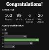 Got em!I lost my 99 win % for over 1000 played after getting a new phone. Thanks, cookies.