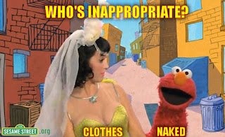There's a time and place for everything. She should have been more formally dressed up because sesame street is a place where kids learn.There are plenty of other hot dresses she could have worn that cover everything and make her look like a respectable lady instead of looking like an rave trash girl with a wedding veil on.