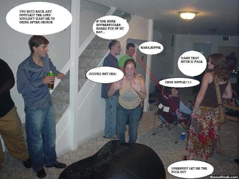 Some drunk dude, my drunk brother, his weird GF, my step brother, my step sister's 40 year old boyfriend, and my 28 year old step sister.