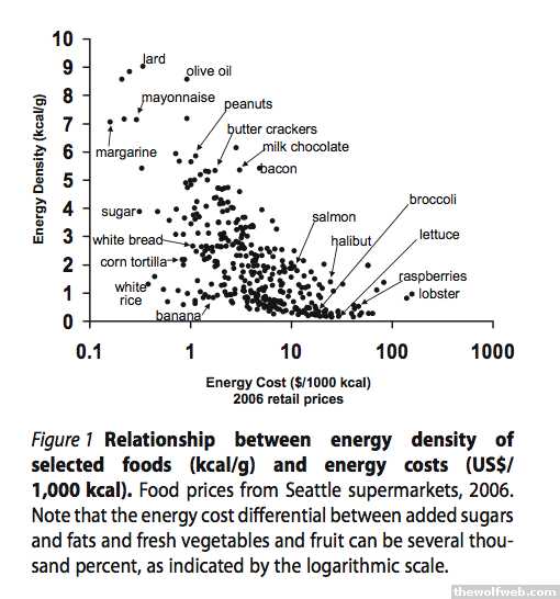 There are so many factors you have to look at, such as the availability of fresh produce, food stamps and the food stamp cycle, education, income, etc. Generally speaking, energy dense foods do cost less: Here's two really good articles about it:http://www.hpclearinghouse.ca/pdf/obesitydietssocial.pdfhttp://www.adajournal.org/article/PIIS0002822307016161/fulltext[Edited on October 8, 2009 at 9:12 AM. Reason : knowledge yo]