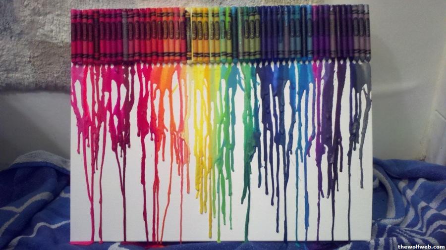 I know. I have to laugh at the people who post both the fattening recipes and the workout motivational pictures side by side!!And Sam, your crayon art turned out well! I want to try it with a decal of a woman standing under an umbrella in the corner. I don't know where I would hang it in my house though!