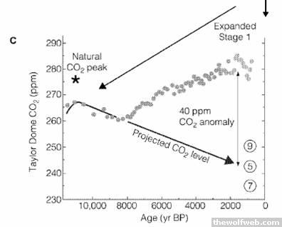 there have been many ice ages, and they come in natural cycles. the fact is, the current global warming trend is going AGAINST the natural cooling cycle.there are basically 3 major cycles that control climate... here is a few diagrams from the Ruddiman 2003 paper discussing global warming and how it relates to natural cycles and human influence...This graph is a comparison of atmospheric methane levels to the insolation (absorption of energy from the sun) cycle that is controled by precession, the 23,000 year orbital forcing cycle. note the abberation at the end of the last cycle, highlighted in the graph below:methane levels compared to orbital forcing cycles. note the digression from the trend at 5000 years ago that coincides with the beginning of large scale irrigation of rice and other crops.Three graphs of CO2 levels. notice the digression from the projected orbital forcing of carbon dioxide at about 8000 years ago. also note the sharp increase in CO2 levels in the second two graphs with the rise of the industrial revolution ~200 years ago(the difference between A and B represent the original theory (A) that the bulk of CO2 has come from the industrial era, while B represents the newer theory (Ruddiman) (B) that anthropogenic influence began with the onset of agriculture.Methane, CO2, and Temperature projected, respectively. The "pipeline" refers to the lag between the release of greenhouse gasses and subsequent temperature change.[Edited on July 26, 2005 at 9:28 PM. Reason : ]