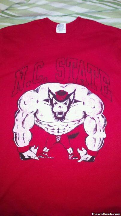 My dad went to NCSU in the 70s. I don't know about all those muscles, but the face is definitely vintage strutting wolf Tuffy. Before they made Mr. Wuf "kid friendly."